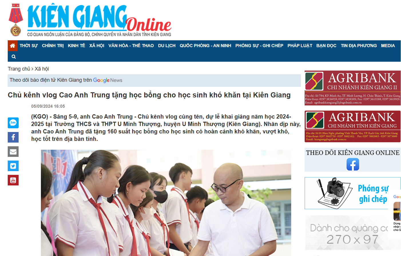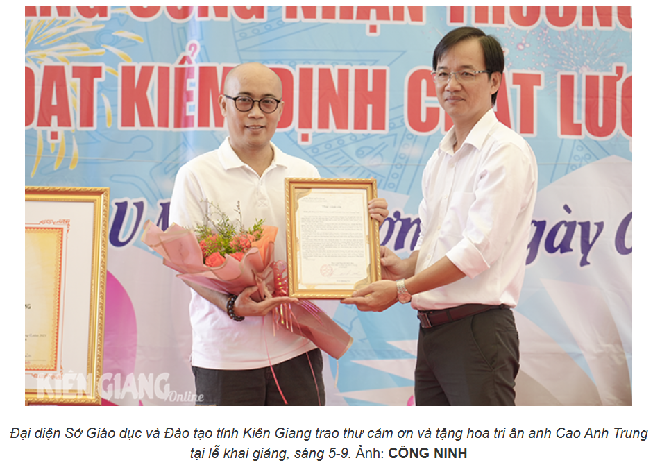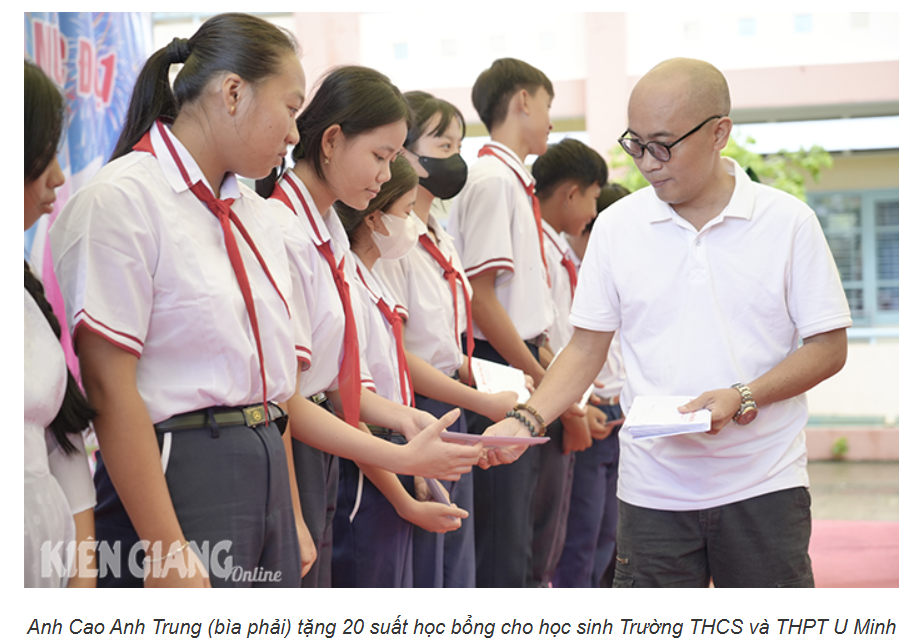 Bài viết trên Báo Kiên Giang về Cao Anh Trung: Tặng Học Bổng Cho Học Sinh Khó Khăn Tại Kiên Giang