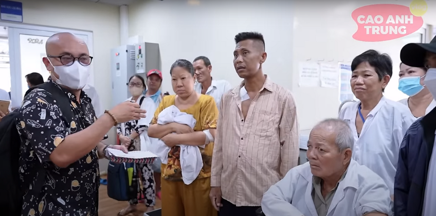 Trung đã đến thăm khoa ung bướu của Bệnh viện Kiên Giang, nơi anh đã thực hiện nhiều chuyến thiện nguyện trước đó. Tại đây, anh quyết định phát 100 suất quà, trong đó có 50 suất dành cho bệnh nhân ung thư và 50 suất cho bệnh nhân thận, mỗi suất quà trị giá 500.000 VND. Trung cho biết, việc lựa chọn bệnh nhân nhận quà được thực hiện kỹ lưỡng, với mong muốn hỗ trợ những bệnh nhân có hoàn cảnh khó khăn nhất.
